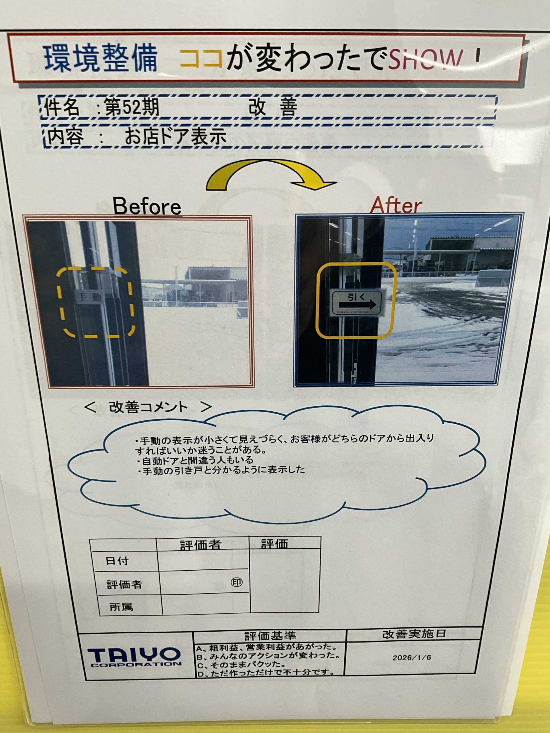今回は、出入り口にある「引き戸」掲示物の改善をご紹介します!